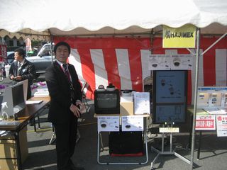 弊社営業のアップですね。 この日は寒空の中、野外での展示会で大変だったと聞いております。 |